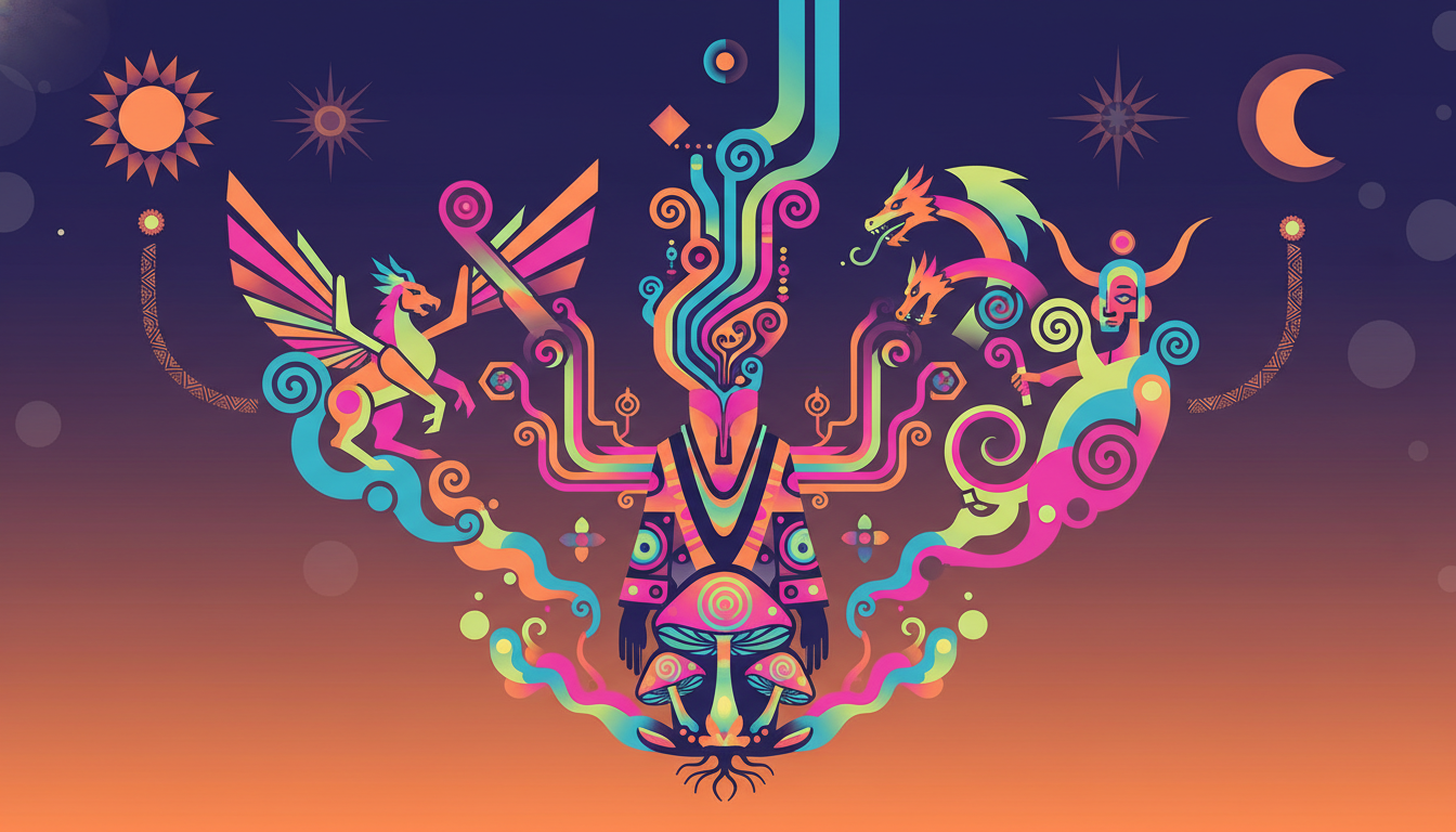 Antik çağlardan günümüze ulaşan mitolojik anlatılar, sıklıkla gerçeküstü öğeler barındırır: tanrılarla karşılaşmalar, hayvanlara dönüşen insanlar, yeraltı dünyasına yapılan yolculuklar veya kozmik ağaçlar aracılığıyla göğe yükselişler. Bu temalar, halüsinojenik deneyimler sırasında yaşanan vizyonlarla şaşırtıcı benzerlikler gösterir.